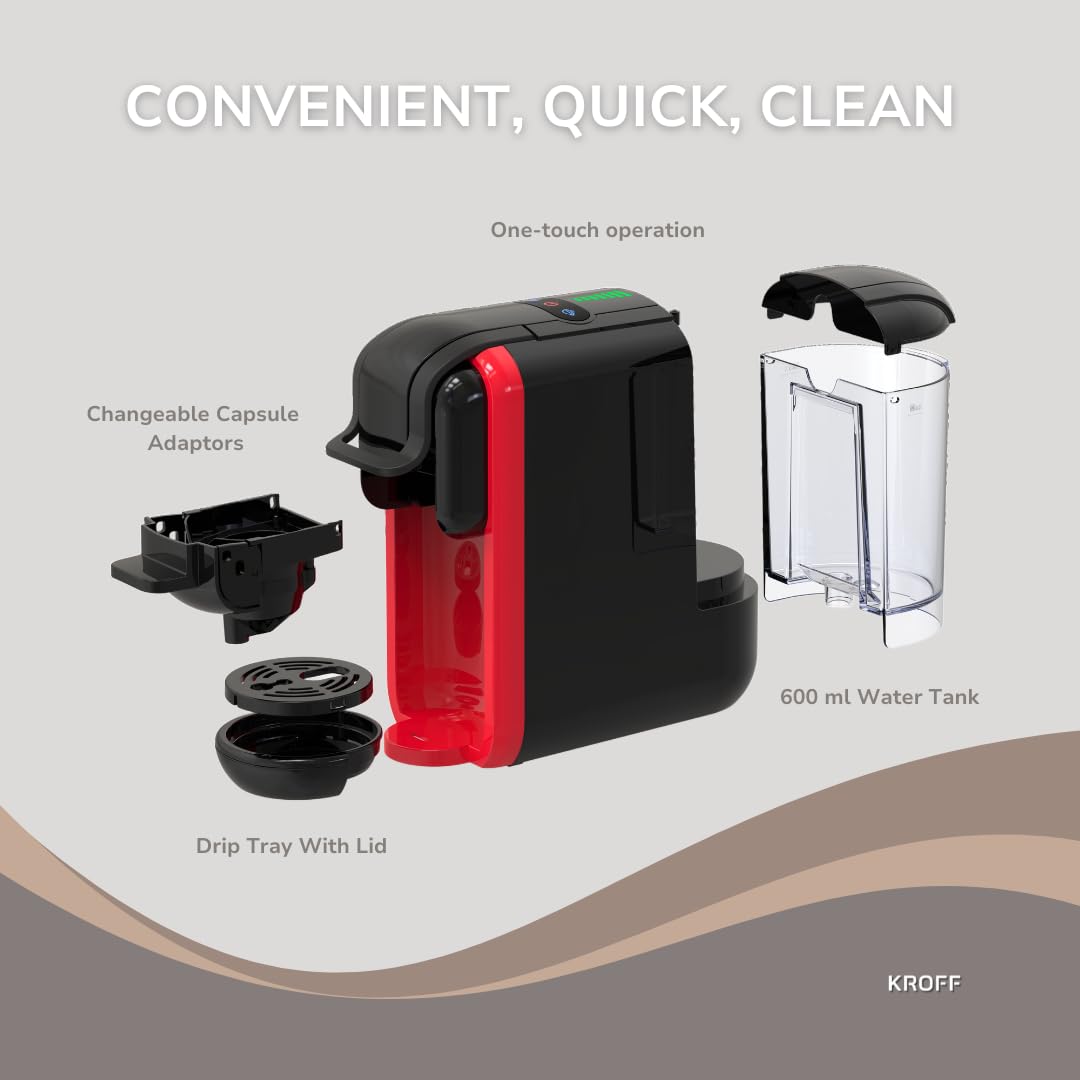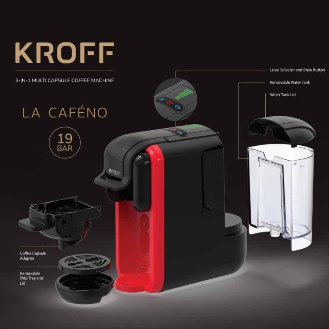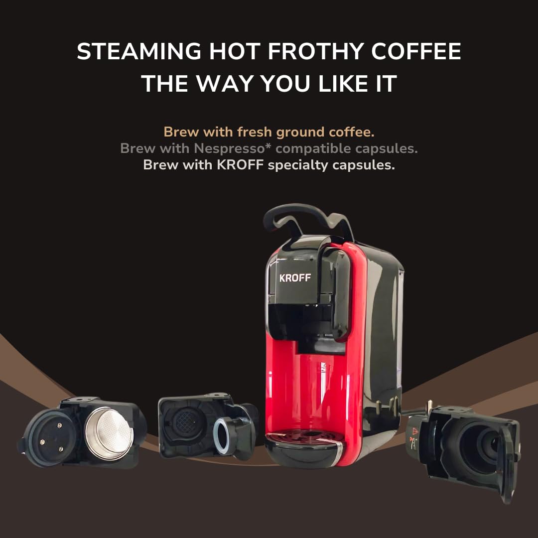 KROFF La Cafeno 3-in-1 Coffee Machine | Compatible with Nespresso, Dolce Gusto & Ground Coffee | 7-Level Brewing