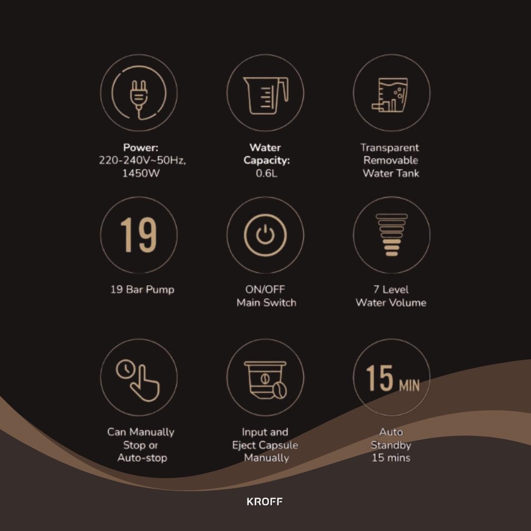 nespresso capsules with ease. You've an added advantage to select water volume for extraction of your