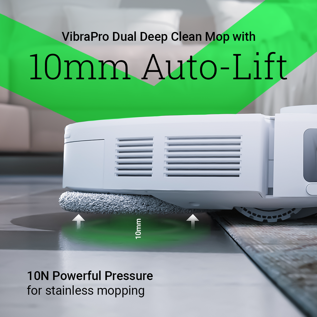 Versatile Cleaning Modes: Switch between vacuuming and mopping effortlessly, with automatic lifting of the mop for precise cleaning and carpet care.