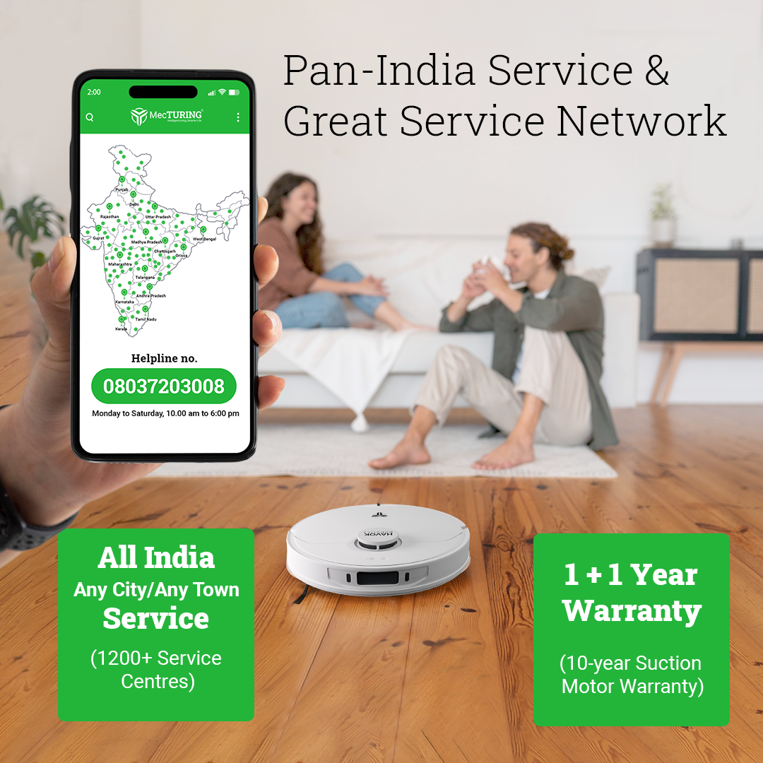 Effortless Maintenance: Enjoy hassle-free maintenance with a device that, along with a 10-year suction motor warranty and a 1 + 1 year product warranty for long-term satisfaction, ensures the reliability of this robotic vacuum cleaner.