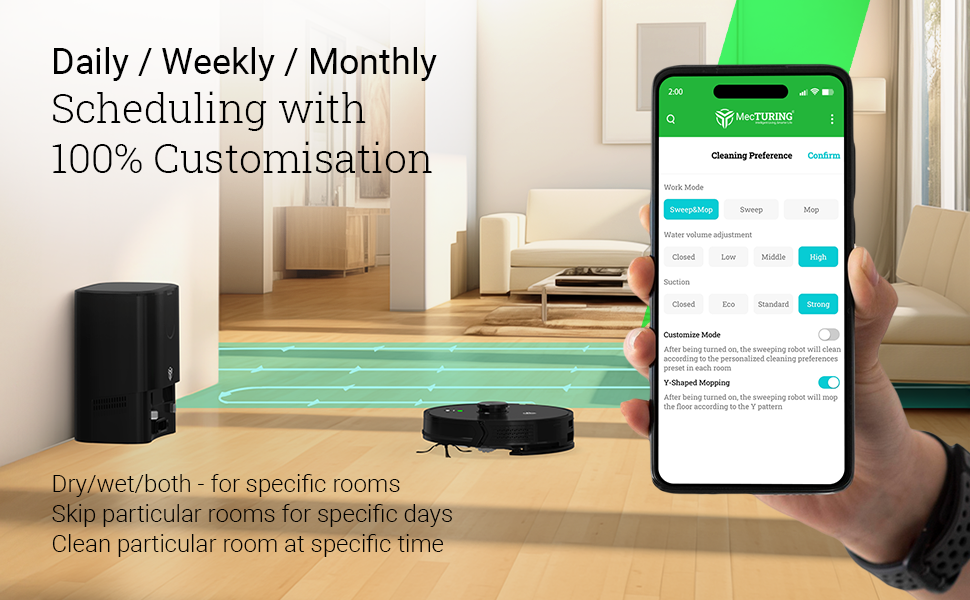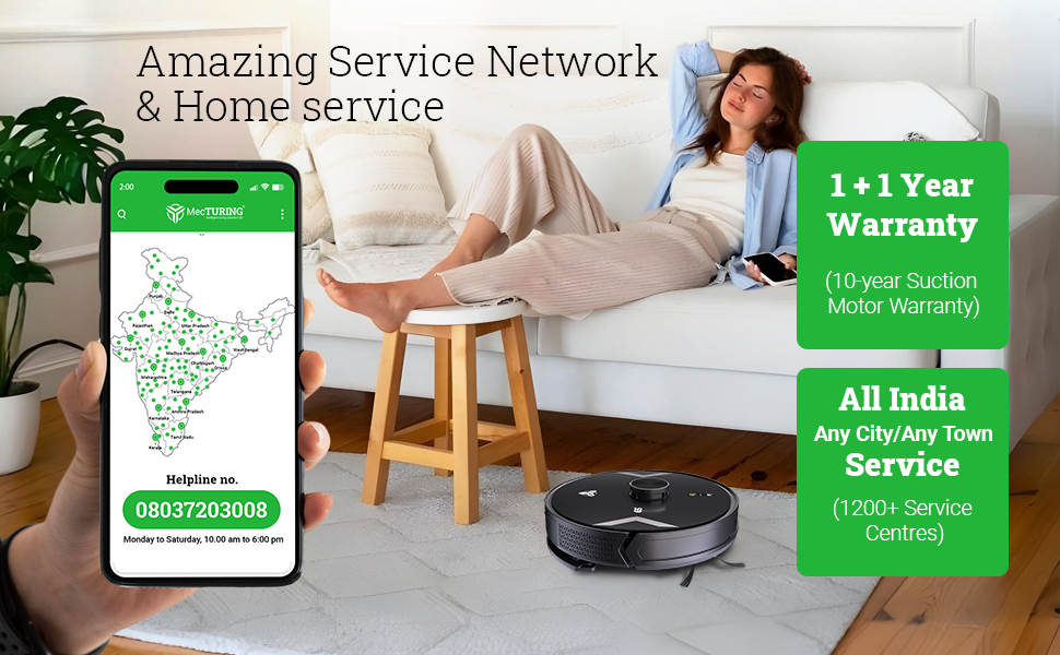 Effortless Maintenance: Enjoy hassle-free upkeep with automatic recharging and cleaning resumption, along with a 10-year suction motor warranty and a 1 + 1 Year product warranty, ideal for a home cleaning machine.